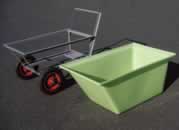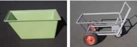 ポリエチレン容器と台車をセットにした、飼料搬送容器。これで、エサやりがラクラクこなせます。 | 飼料搬送容器台車セット 品番 M406C-200 廃番 |