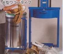 ホテル・レストラン・ファーストフード・病院の厨房で活躍。 オフィスの一般ゴミもまとめて圧縮可能 <M430-200N> 大型ワゴンを採用し、大きなゴミも楽に投入ができます。 <M430-300N> 船内等に設置してワゴンが転倒する恐れがある場合 ■ワゴン プレス本体が一台でも複数の場所、分別種類ごとにワゴンを追加することにより、効率の良い回収・処理が可能となります。 ワゴン直径:450mm(M430-100N) / 600mm(M430-200N) ![]() ■梱包物(M430-100N / M430-200N / M430-300N) 袋詰めして圧縮します。