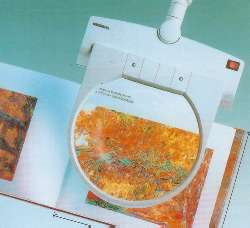 夢が実現に! A4サイズが一度に見ることができる新世代レンズ 史上最大 レンズ220mm 倍率 1.75倍 両手が使えて便利。 自然な姿勢で必要な範囲が一望できる。 机にはさむ、拡大鏡は18mm〜74mmの厚さまで対応可能 |