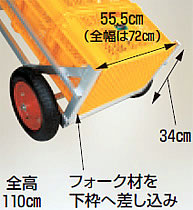 フォーク材をコンテナの下枠へ差込めますから、重いコンテナを持ち上げます。(20kgコンテナ用) ※コンテナは付属しません。 |