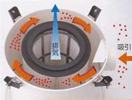 | ■特長 ●サイクロン構造を採用 単相100Vで驚異の集塵力を実現。サイクロン構造によりフィルターへ粉塵付着を低減させながら強い吸引力を持続し、フィルターの寿命も大幅にアップしています。 ※赤い小さい丸は粉塵をイメージしています。 ![]() ●フィルターの底上げ構造を採用 吸引した粉塵は下層部に堆積しますが、底上げ構造によりフィルター下部の目詰まりも軽減。強い吸引力を持続し続けます。 ※赤い小さい丸は粉塵をイメージしています ![]() ![]() ●2P/3P兼用プラグを採用 電源ケースには2Pでも3Pでも選べる兼用プラグを採用。状況に応じた使い分けが可能です。 ![]() ●大型キャスターを採用 直径100mmのウレタン製樹脂キャスターにより、床に黒いゴム跡が付着しません。移動も簡単です。 ![]() ●粉塵処理が容易な構造 軽量なボディのうえ、バンパーリングをグリップすることで、溜まった粉塵を捨てるのも簡単です。 ![]() ●低騒音・誹風部設計 特殊カバーの採用によって、直接外に排出されず下に排出される構造になっています。 ●全周バンパーを採用 本体上下に360°のバンパーリングを装着。グリップも可能で移動に便利、本体保護も兼ねています。 ●防水型ケーブルクランプ採用 本体を分解することなく、ドライバー無しでケーブル交換できます。 ![]() ●メンテナンスに優れた設計 粉塵を吸入したフィルターは簡単に取外しが可能です ![]() ■用途 ●解体・切断・はつり・穴開け・研削・ケレン・吹付けなどの作業時に発生する粉塵処理。 ●粉体の移送・回収時に発生する集塵処理。 ●空調ダクト・各種フィルター・エアコンブロー部のクリーニング。 ●リフォーム内装・家屋解体時の粉塵処理。 ●各所空調の強制換気など。 ■標準仕様