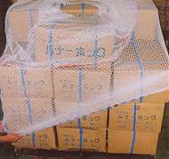 ■注意 ・使用時に必要以上の力で引っ張らないで下さい。 ・金属製品などへ直接掛けられる場合は、ネット、ゴムの破断にご注意下さい。 ・水に濡れた場合は、充分に乾燥させてからご使用下さい。 ・荷崩れ防止ネットを使用時にフォークリフト、トラックでの、急発進、急停車、急旋回は避けて下さい。 |