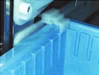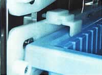 ■オプションのストッパーは不用意なトレーの落下を防止します。 ![]()