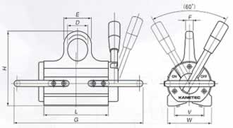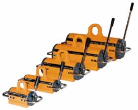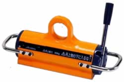 | ■特長 ●全機種鋼板・丸鋼を吊り上げられます。 ●永磁式で電源不要なので停電や配線系統の故障による危険がありません。 ●強磁力で小型軽量です。 ●着脱機構(ON/OFF)の操作が簡単に出来ます。 ●ある一定以上の厚み(弊社吊り上げ基準法をご参照下さい)の鋼材が吸着面に無いとON/OFF出来ないという安 全対策を施しています。 ●OFF時には安全対策と耐久性の面から、レバーは一気に戻らないように設計しています。 ![]() ■用途 倉庫や作業現場における鋼材の運搬、あるいは工作機械における、機上へのワーク昇降移動等に、クレーンやホイ ストの吊上部として機能する、永磁式の吸着器具です。 機械部品、プレス型、プラスチック成形用の型など平面をもつ半製品の運搬、黒皮鉄板、平坦な鉄鋼素材の運搬に 適します。 ■シリーズ 下からM504PR-V150A、M504PR-V300A、M504PR-V600A、M504PR-V1200A、M504PR-V1800A ![]() ●特長1 ON/OFF回転角度が小さく操作が非常に楽になりました。 H型鋼吊や狭所に置かれたワークの吊り上げに威力を発揮 ![]() ●特長2 OFF側へのハンドルの戻りを抑えた磁気回路の採用により、片手で操作可能。 ●特長3 接地面積(吸着面)が大きく、バランスのとれた安定した吸着が可能。 ●特長4 ガード付きなのでリフマの移動が、位置決めも簡単。 ●特長5 最適なV面で幅広いパイプ、丸鋼の径に対応。 ![]() ●特長6 吊り具の径が大きく、フック等を取付やすくしました。 ●特長7 丸みを帯びた斬新な本体形状 最適磁気構造を追求した丸形ヨーク採用により、小形軽量化と余裕のある吸着力・Gap特性を両立しました。 ●特長8 前部後部のガード(取手)で、本体を保護しています。 ■寸法図 ![]() ■仕様