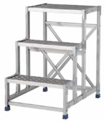 <特長> ●床面は縞板にしスベリを防止。 ●支柱についてはアルマイト処理されているので錆びにくく傷つきにくい。 ●筋交いを装着し、高強度です。 <用途> ●工場内の作業に。 |