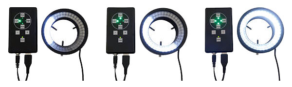 | ■特長 ●80灯を2ラインに配置した高輝度タイプ ●M511ED-80Tは4分割独立点灯可能。4分割独立点灯時も調光可能 ![]() ●M511R80-BLUEは高輝度青色LEDを採用、M511R80-REDは高輝度赤色LEDを採用したLEDリング照明 ![]() ![]() ●取付けサイズ ![]() ●着脱可能な拡散板付き ※M511R80-BLUE、M511R80-REDは拡散板の取り外しはできません ![]() ●コントロールボックス分離型。 LED本体から分離しているコントロールボックスで調光可能。手元で調光可能のため便利。 ●対物レンズのスカート部分に溝が切ってある顕微鏡に取付可能です。 溝がない顕微鏡の場合は便利なオプションを使用することで使用可能になります ●ボディーは堅牢な金属ケースで放熱効率が良い ■タイプ