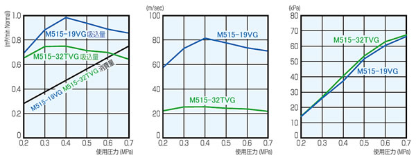 | ■特長 ●圧縮空気で吸引 圧縮空気を動力源として吸引力を発生させるため、回転部品などがなく故障は皆無です。 ●ジェットエジェクター 吸引力を生み出す装置でサイレントクリーナーの心臓部です。回転部分がない為故障の心配はありません。 抜群の性能を誇り、さまざまな分野で活躍するワンダーガンシステムを採用。 ●サイレンサー 排気音は58dB~60dB(0.5MPa・5kg/cm2時JIS1m)と非常に静かです。クリーナー使用中の大声はもう必要としません。使用中でも静かに対話出来ます。 ●インナーフィルター(M515-32TVG) 本体内部にフィルター(グラスウール製)があり、集塵したものを外部に出さないようになっています。 ■性能表 データはエアーバルブ全開時のものです。