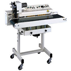 スタンドタイプの横型シーラーです。 印字プリンター付もご用意。 |