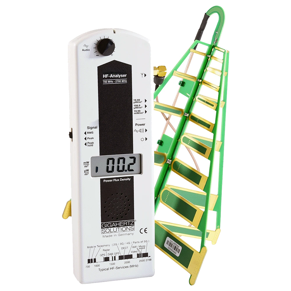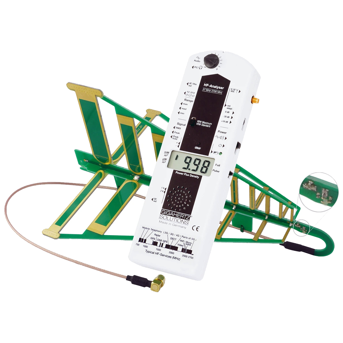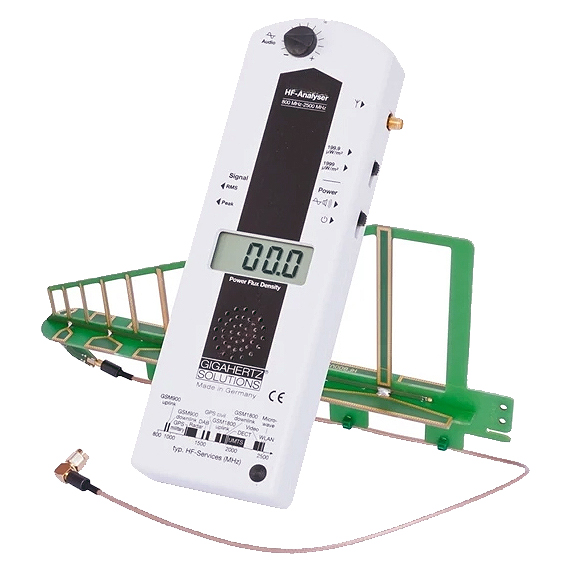 ●M547F-58Bは、最大2.5GHzのHFフィールドを検出します。対数周期アンテナを用いて測定データを受信します。測定データはディスプレイに表示されるだけでなく、音響信号でも出力されます。建築生物学分野における電気スモッグの検出に利用されます。