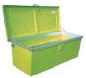 | ガラス繊維強化プラステック製品は、あらゆる自然条件・酷使に半永久的な耐久性を持ち続けます。 鉄板製品では、気温差によって生じる水滴(結露)により、収納されている高価な部品、器具、又は本体等を損傷(腐食)させる場合がありますが、ガラス繊維強化プラステック製品では、そのような心配はありません。 ■車載収納にも可 ![]() ■特長 ●ガラス繊維強化プラステック製品だから、アルミより軽く鉄よりも強い強度を持っています。 ●完全防雨の工夫が施してある為、錆びず、腐らず、真夏の熱射や寒冷地の厳しい冷気にも耐えます。 ■用途 ●車載収納ボックス ●危険物品収納 ●部材、部品、工具収納 ●緊急災害機器用具 ●保安用品収納 ●物流コンテナ ■寸法図 ![]() ■タイプ