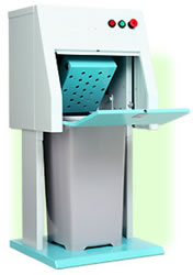 狭いスペースにも設置が可能な袋かけタイプ 高さが1,100mmと低いのでどんな場所にでも設置できます。袋かけタイプで圧縮物の保管場所も小さくて済みます。 M573-200PP 容器の前面が開くので圧縮ゴミの取出しが簡単です。 ![]() |