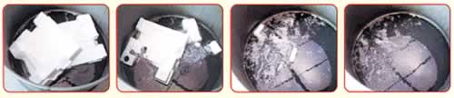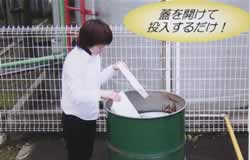 | ■3大メリット @お電話1本でリサイクルできます。 溶剤入りドラム缶のお届け・お引取り※1は、お電話1本で対応。日本全国どこでもお届けできます。しかも、運送費 用は、一切頂きません。 ※1 運送費無料は、全国でも当サービスだけです。 A手軽にコスト削減、回収時は買い取ります。 4トントラック1台分の発泡スチロール※2がドラム缶1本に。産廃処分費、設備費を大幅にコストダウン※3できます。 また、満杯になったドラム缶は買取回収いたします。 ※2 スーパーや市場で一般的に排出される魚箱など。 ※3 溶剤1g単価は、同様他社製品の約50%。 B設備不要、ご用意はスペースだけです。 特別な処理施設への投資は、一切必要ありません。畳半分ほどのドラム缶設置スペースだけご用意下さい。※4溶 剤入りドラム缶なので、溶剤のストックも不要です。 ※4 車上渡しのため、フォークリフトなどの積み降ろし手段が必要です。 ■溶かすスピードも違います! 分離沈殿型の為、液の劣化がほとんど無く、溶かすスピードが最後まで落ちません。