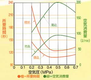 ■空気消費量&所要時間(水200リットルのドラム缶への移送)