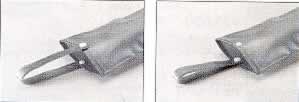 アンブレラバックスタンド用塩ビバッグ 繰り返し使用タイプ(再生材使用) 従来のシンプル傘バッグの吊り手をホック式にしましたので、保管、吊り下げの時の汎用性が広がりました。 |