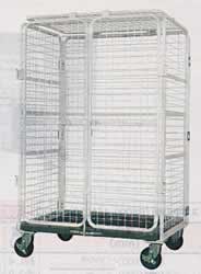 | <特長> ●大切な「商品」「荷物」を盗難・紛失の事故から守るカーゴ台車 ●天板および側面:スチールメッシュ (50mm×50mmピッチ) ●塗装色:ホワイト(カチオン電着+粉体塗装) ●最大積載荷重500kg <用途> ●医薬品や取扱注意品目の搬送・保管に! ●重要書類や情報データー漏洩防止に! ●高額商品の盗難防止に! <材質> ●天板・側面スチールメッシュ ●フレーム:スチール製 ●床板:プラスチック ■使用例 ![]() ■仕様