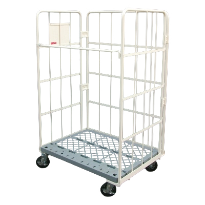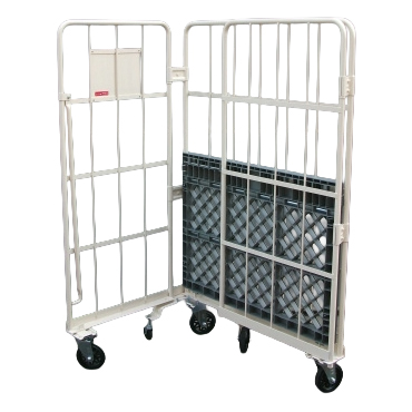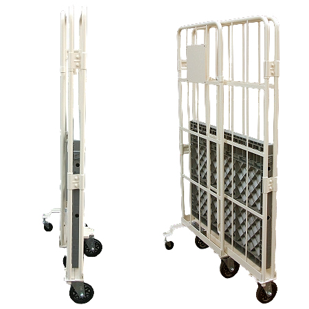 M617C-P3Mシリーズは、通常のL字型までしか折畳めないカゴ車を、一枚板状の形、(I字型)にまで折り畳みを可能したカゴ台車です(特許取得済)![]() ■特長 ●使用時は通常のカゴ車とまったく同じですが、I字型に折りたためる為、不使用時の収納、トラックの積込みが普通カゴ車の倍です ![]() ![]() ●特殊補助車輪(特許取得済)を搭載していますので、直立の安定性は高いです(数十枚のネスティングが可能です) ![]() ■仕様
