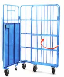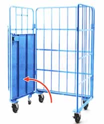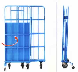 現在使用されているカゴ台車は、不要時、L(エル)型に折り込むのが大多数です。 そのため、収納するときに台車の不整列で余計なスペースをとり、トラックに積み込む時にも多くの時間を要しています。 このような不便性を解決するのがM617C-S3Mです。 前面補助車輪と3面折り込みで直立状態を保ち、多数ネスティングしても整列整頓できます。 作業効率抜群、トラック積込収納数は40~50%の増量。 |