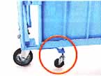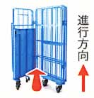 ■使用上の注意 空車時の移動はV(ブイ)字の状態で走行させて下さい。 走行安定性は抜群。収納する時は、左側面を折り込んで完了。 以下、I字状態で数拾台ネスティングが可能です。 ![]() ■仕様 ※前輪ブレーキ付き、5輪自在車輪(補助車輪を含む)