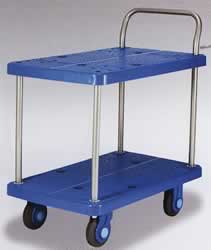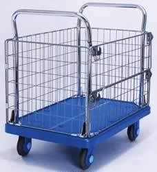 静かで、滑らかで、軽くて、人に優しい静音台車。 2段式の他に、ハンドル折りたたみ式や網カゴ付きなどもご用意。 |