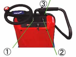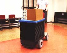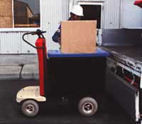 | ■特長 ●立ち乗りでラクラク運搬!電動だから室内での運搬に最適です。 ![]() ■フォークリフト感覚で操作できる丸ハンドル!前後進・リフト操作はボタン切替式の簡単操作。 @リフトスイッチ A前後進切替スイッチ Bアクセルレバー ![]() ■凸凹路面でも追徒しやすいセンターピポット方式を採用!ノーパンクタイヤ採用。 ![]() ■荷台上下昇降機能付きで荷物の積み替え作業もラクラク! ![]() ■仕様