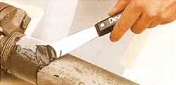 | ■特長 ●溶接ができない、火気の使えない箇所での使用に最適 ●高温時での特性に優れ、熱を受け続けた場合による劣化が少ない ●金属に対して、強力な接着力 ●異種金属の補修や接着を行っても電蝕を起こさない ●高温の状態でも、充分な剛性を保つ(ガラステープを併用して下さい) ●高温の補修では、発泡することなく数秒から数分で硬化するので緊急の修理には最適 ●A剤とB剤の混合比率1:1(重量・容積共)のため、現場での作業が非常に簡単(混合比率はかなりラフでも良い) ●A剤・B剤共に殆ど毒性が無い為かぶれません。 ![]() ■用途 ●蒸気配管や給油管の漏れ止め ●エンジンブロック、クランクケース、ラジエーター等のクラックや腐蝕部補修 ●パイプ、バルブ、フランジ等の補修 ●熱交換器、ボイラー等の腐蝕部やクラックや腐蝕部補修 ●各種プラント機器・装置の肉盛り補修 ![]() ■使用に適さない条件 ①アルカリ性の薬液に接する箇所。 ②熱水タンク、スチーム配管などの内側からの補修 ※外側からの補修は全く問題ありません。 ■硬化促進剤について 促進剤は気温が20℃以上の時は使用しないで下さい。 ■保管上の注意 本製品は必ず低温で保管して下さい。温度が高い所に放置するとB剤は硬化して使用できない状態になります。 最適保管温度は5℃です。また、湿気を嫌いますので容器を密閉状態にして下さい。 ■データ