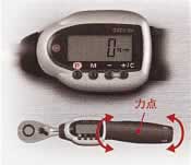 | ■用途 ラチェット感覚で扱えるデジタルトルクラチェット 通常のラチェットハンドルとほぼ同じ全長のため、ラチェットハンドル感覚で早回し作業が可能。かけたトルクがリアルタイムにデジタル表示で確認できるので、シビアなトルク管理が可能です。 ![]() 音と光でトルクをチェック、ピークホールドでトルク確認 設定トルクの90%でブザーの遮断音と共のLEDが点滅。 100%でブザーが連続音に変わりLEDが点灯するので、液晶画面が見えない角度でも使用可能。ピークホールド機能により正確な締め付けが出来たかどうかを目で確認できます。 ![]() トルク単位換算機能付で旧車や外車の設備も安心。 N・mをkgf・m、lbf・in・ftの各単位に換算可能。N・mでトルク指定がない旧車や外車の整備作業で面倒な単位換算の計算が必要ありません。設定トルクは5つまでメモリ出来るので、頻度の高い作業を登録しておけば便利です。 ![]() ■寸法図 ![]() ![]() ■仕様