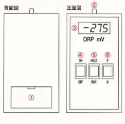 | ■測定方法 ①本体電源スイッチをONにする。 ②プローブを真水または水道水に浸ける。(ビニール保護カバーは付けたまま) ③3分間以上浸けて、表示値が+200mV以下のときは、フラッシュスイッチのP側を押して+200mV以上にする。 ④プローブ先端を測定値が安定するのを確認し、還元電位を読みとり別添の校正表から水素濃度を求める。 ⑤測定終了後、プローブ先端を真水または水道水に雄3分間以上浸して、軽く水を切って保管します。 ![]() ■仕様