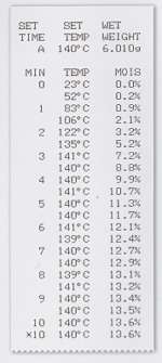 | ■説明 他の電気的や光学的な測定法も存在しますが、それぞれ測定対象が限定され専用器となってしまいます。 およそ汎用性となると赤外線水分計にはかないません。 本器は高精度な測定を実現するため、 分解能5mgの天秤ユニットを採用し、また乾燥部には実績のある熱容量185Wの赤外線ランプを装備しました。 さらに乾燥制御ソフトウェアによってえ自動的に加熱乾燥を停止させ、水分値が得られる「自動停止モード」を採用し、測定をより簡便にすることが可能となりました。 オプショナル プリンタで、測定結果を文字データ形式で出力することもできます。 本器を水分管理を必要とする品質管理部門や、検査部門の常備水分計としてご活用ください。 ■特長 ●乾燥減量法に最も類似した加熱乾燥・質量測定方式。 公定標準測定法の「乾燥減量法」と類似した、加熱乾燥・質量測定方式です。 ●水分表示と固形分表示の切り替えが可能 簡単な操作で測定値を水分表示、または固形分表示にすることができます。 ●オートテア機構を採用 天秤のゼロ点校正を自動的に取りながら測定を行うため、長時間の測定でも天秤ドリフトは補正され、高精度な測定が可能です。 ●熱源は応答がすばやく、実績のある赤外線ランプを採用 数多くの現場で使用され、確実な実績をもつ赤外線ランプ方式を採用。 ●不可欠な2種の測定モードを装備 時間停止モードと自動停止モードを備え、測定試料の乾燥特性に適した乾燥条件の選択が可能です。 ●条件設定が可能な自動停止モード 自動停止モードは水分の変化量を監視することで、乾燥終了点を自動的に決定します。 水分変化量が1分間、もしくは2分間の監視時間内で0.1%以下のとき乾燥終了と判断します。 ●オプショナル プリンタに接続可能 測定途中の乾燥状態、最終測定値などをグラフ化しプリントアウトすることが可能。 (下記図参照) ■オプション