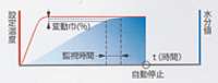 ●自動停止モード 1分/2分間の水分変化(変動巾%)が0.1%以下になったときに自動停止します。 ![]() ●時間停止モード あらかじめ設定した時間(t1)で停止します。 ![]()