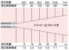 測定温度範囲 0〜500℃ 測定波長 8〜14μm 測定視野範囲 6:1(180mm@1000mm) 応答時間 300ms(95%応答) 放射率 出荷時0.95(別途オプションにて0.10〜1.00可変) 使用周囲温度 -10〜70℃ 使用周囲湿度 10〜95%RH(結露なきこと) 保護構造 IP65(NEMA-4) 材質 ステンレス 測定精度 ±2%もしくは±2℃のどちらか大きい方(周囲温度23℃±5℃,放射率1にて) 再現性 ±1%もしくは±1℃のどちらか大きい方 出力 0-5VもしくはK熱電対 電源電圧 12-24VDC(リップル2.5%以下、20mA) 出力インピーダンス 50Ω 負荷抵抗 >50kΩ 外形寸法 φ18×129mm(M18×1mm) 質量 約90g