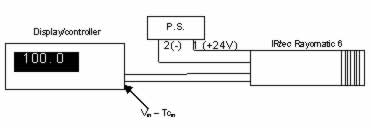 非接触温度センサの出力ケーブル(Sign+とSign-)をコントローラもしくはメータリレーの入力に接続して、PS+とPSーに