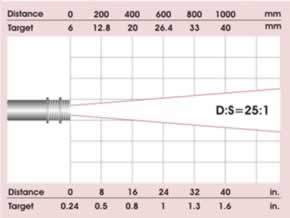 測定温度範囲 -40〜1000℃ 測定視野範囲 φ40mm/1000mm(測定視野範囲図参照) 測定精度 ±1%もしくは±1℃のどちらか大きい方(周囲温度23℃±5℃,測定温度-20℃以下を除く) 再現性 ±0.5℃もしくは±0.5℃のどちらか大きい方 応答時間 150ms(95%応答) アナログ出力 チャンネル1:4-20mA/0〜20mA/0-5V/0-10V/熱電対J・K出力(測定対象物温度) チャンネル2:0-5V/0-10V(センサヘッド温度) 分解能 0.1℃ 信号処理 ピークホールド/バレーホールド/アベレージング 測定波長 8〜14μm 放射率補正 0.100〜1.100 透過率補正 0.100〜1.100 使用周囲温度 センサヘッド:-20〜85℃(レーザオン時は50℃まで) アンプユニット0〜65℃ 使用周囲湿度 10〜95%RH(結露なきこと) 保護構造 IP65(NEMA-4) 材質 センサヘッド:ステンレス アンプユニット:亜鉛ダイキャスト 電源電圧 8-36VDC 出力インピーダンス 電流(ループ抵抗500Ω以下)電圧(負荷インピーダンス100KΩ以上)熱電対(20Ω) 外形寸法 センサヘッド:51.5×35×21mm アンプユニット:120 mm x 80 mm x 40 mm 質量 センサヘッド:約100g アンプユニット:約450g