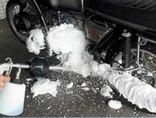 エアーとミキシングすることで、洗剤をムース状にして噴射します。 少量の洗剤で広範囲に効率よく塗布できるのでランニングコストの削減にもなります。 エアーをたっぷり含んだムース状の泡なので軽く、液ダレをせずにワーク面に長時間付着し、洗剤の効果をより発揮させます。 洗剤は吸い上げる方式なのでタンク内に圧力はかからず安全です。 エアーコンプレッサーにつなぐだけで簡単に使用できます。 |