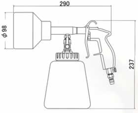 | ■アスベスト対策にも効果的 例えば天井の高さが3mあるような駐車場での作業ではコーティングをするのに足場が必要となります。 それを移動させながらの作業は作業者の負担が大きいばかりでなく、多くの時間を要する大変効率の悪い作業であ るのは明らかです。 しかし泡ムース噴射エアーガンならばムース状でありながら、スプレーよりも飛距離があるので、塗布面は一目で分 かり、きめ細かな軽い泡がアスベストを捕獲して徐々に浸透していきます。 驚くほど簡単で効率の良い作業が可能となったのです。 発泡の隙間がすくなく細かい汚れも落としやすく割れにくい。1〜10μの洗剤が効率よく吸収されます。 ■主な使用・用途 ●薬剤泡の塗布 ●泡による洗浄 ![]() ■寸法図 ![]() ■仕様