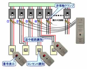 | ■特長 ●安全な非接触送信と非接触受信で探索できます。 ●データ回線の現用線でも支障なく運用できます。 ●端末やコンセントに対応するブレーカーを識別できます。 ●HUBや分配器にクランプするだけで端末識別ができます。 ●0V無電圧線から活線の200VACまで対応します。 ●受信機に暗闇でも明確な発光LED表示を装備 ![]() ■寸法