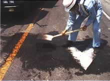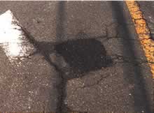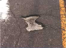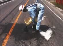 穴に埋めて踏むだけ、路面の凸凹補修材。 |
