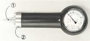 メーター表示に圧力計を使用した硬度計です。 本器は硬度を表示する理論値kg/cm2を直接指示する様圧力計を使用した本格的な土壌硬度計です。 |