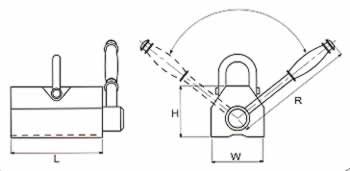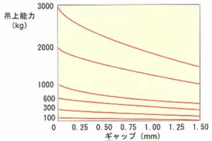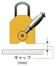 ■ギャップと吊上能力の関係 ギャップと吊上能力の関係、図のようになります。 (材質SS400、厚み50mm、表面粗さ▽▽面) ![]() ![]() ■寸法図 ![]() ■仕様