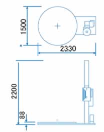 ■M812FRM-1000Kの特長 M812FRM-1000Kは「ネックダウン方式」により、フィルムを約150~200%延伸が可能で、荷崩れのない安全な包装 を実現します。また、ターンテーブルが停止時に定位置に止まるため、荷物の搬入・搬出が容易に行えます。 さらに、低床タイプのため、スロープ台(オプション)が使用でき、ハンドフォークでの運搬も可能です。 ※フィルム装着時および梱包作業終了時は、カッターナイフにより人手が必要となります。 ■M812FRM-2000Kの特長 M812FRM-2000Kは「プレストレッチ方式」により、フィルムを約150~400%延伸が可能です。 自動調整機能により貨物の形状や大・小に合わせて率を自由に延伸選択できます。 また、包装パターンが6種類設定でき、貨物の形状に合わせてより最適な包装が可能です。 さらに、自己診断機能により、包装中の異常事態やマシンのトラブルをすばやく検知し、自動停止し、操作パネルのアラームランプで異常をお知らせします。 ※フィルム装着時および梱包作業終了時は、カッターナイフにより人手が必要となります。 ■寸法図