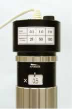 | ■特長 ●作動距離70mm 一定 ●光学倍率×0.5~2.0 (15”TVモニタ上X25~100) ●オートゲインコントロール(ON/OFF切替) ●ホワイトバランス設定機能付 ●照明の調光つき ●専用コンバージョンレンズもあります×2,×0.5(別売)