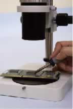 ■ラックピニオン式 上部に弊社顕微鏡付属の白黒ステージが取付られ回転できます。観察物の安定した移動に便利です。