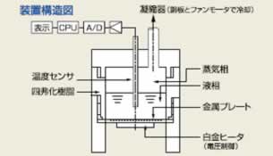 ■沸点式アルコール濃度計(エタノール用・メタノール用) 本濃度計は、水とアルコール以外の溶解物質を除去するための蒸留工程を省略して、直接アルコール濃度を測定することが可能で、幅広い分野でのご使用が可能です。 エタノール・メタノール水溶液用濃度計は重量百分率での表示で、測定範囲は0〜2%/0〜20%/95〜100%(但しエタノール水溶液は96%〜100%)と3種類用意しております。 ■使用用途 下記製品の品質管理、工程内検査、研究開発にご利用頂けます。 ●食品防腐剤、食酢(エタノール水溶液用) ●医薬品、化粧品(エタノール水溶液用) ●洗剤、洗浄溶剤(エタノール水溶液用) ●バイオエタノール、エタノールエンジン(エタノール水溶液用) ●ダイレクトメタノール型燃料電池(メタノール水溶液用) ■特長 @混入不純物の影響を受けません。 高分子材料やカーボンなど不揮発物質は、沸点温度に影響を与えませんので蒸留などの前処理は不要です。 A再現性の高い測定可能です。 沸点と濃度の関係(検量線)は信頼性が高く、微小な沸点温度の変化を正確に測定することができます。 また、沸点と濃度の関係(検量線)は低濃度領域ほど濃度による沸点温度変化が大きく信頼性の高い測定が可能です。 B持ち運び可能で操作が簡単です。 測定時の温度管理や測定熟練度は不要です。またポータブル型で持運びが可能なため測定場所の制約は受けません。 C採取試料は10mgと少量です。 D従来の測定法と比較して高濃度で低プライスです。 ■仕様