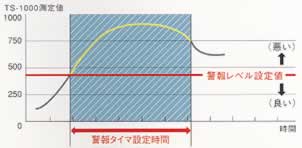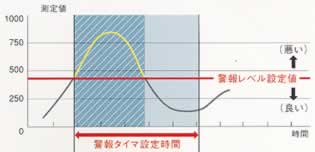 ●検出窓にサファイアガラスを採用 傷つきにくいサファイアガラス採用により、メンテナンスの際、窓面をゴシゴシ丸洗いしても大丈夫です。 ![]() ●設置場所を選ばない手のひらサイズ 手のひらサイズのコンパクト設計なので、設置場所を選ばず、投げ込み式で簡単に取り付けできます。 ![]() ●ダブル設定(時間・レベル)による警報出力機能 時間(1-120分)とレベル(1-1000mg/L)を設定しておくと、自動で警報を出力します。SS値が警報レベルを超え、さら に設定した時間をオーバーすると自動で警報出力が動作します。