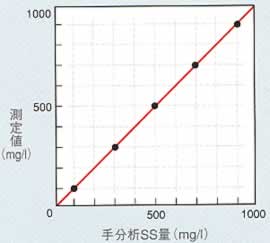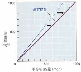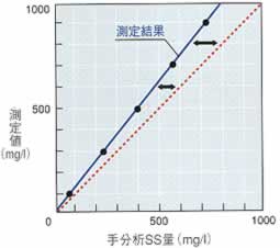 ■M8S-1000と公定法との相関 手分析によるSS値との差を補正機能により解消 ![]() M8S-1000はカオリンを標準物質として検量線を作成しています。 従って手分析によるSS量とM8S-1000による測定値は1:1になっています。 ●実際の現場では・・・ 実際の現場では手分析SS量とM8S-1000測定値に差が生じる場合があります。 ![]() ●補正機能を使用 補正機能で手分析SS量とM8S-1000測定値の合わせ込みができ、現場の水質特性に応じた管理が可能になります。 ![]() ■アプリケーション ※画像はイメージです。
