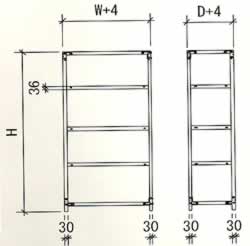 | ■標準付属 ボルト無しで棚板の取付が可能。 棚位置の変更、増減が簡単です。(天地段を除く) ![]() ■軽量棚(304)標準寸法 ![]() ■仕様