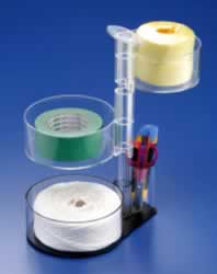 | ■寸法 ●材質 アクリル透明 ●寸法 180φ×265(D)×340(H) ●上段 150 φ×60 H ●中段 170 φ×60 H ●下段 180 φ×60 H 商品の入れ替え時、上段(150φ) 中段(170φ)が右左に動きます。 ハサミ、カッターナイフなどの収納可 ■使用例 ![]() |