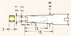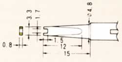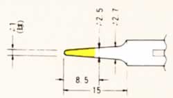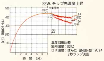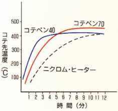 | ■特長 ●セラミックハンダゴテは、ここが違います。 ”スリット・チップ方式”により、ヒーターの熱が瞬時にムダなく伝えられ、立ち上がり温度の素早さと、経済性が抜群で す。また、安定した熱供給ができるヒート・バランス設計により、ハンダ作業時の温度低下を最小限に留め、熱回復も アッという間です。 ●スリット・チップ方式の特長 優れた温度特性が最大の特長です。しかも、省エネ時代にマッチした省電力によって消費電力を半減させました。ま た、ヒーターとの焼き付けを防止し、寿命が長くなることに成功しました。 ●セラミックヒーター内蔵 高耐熱性のセラミックの中に、特殊な抵抗体をプリントしたヒーターによって、高絶縁性・長寿命を実現しました。 さらに、ヒーターも小型化した”優れ物”です。 ●使い易い機能的なデザイン コテペンの基本コンセプトは(使いやすさ)です。 人間工学に基づいて設計されたペンシルタイプは、シンプルで小型・軽量ですから、誰にでも操作が容易です。 ■構造図 ![]() ■温度特性 ![]() ■ニクロム線ヒーターとセラミックヒーターの違い