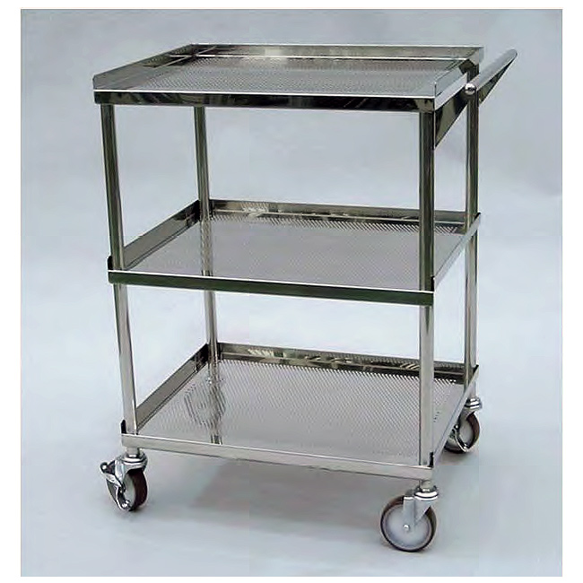 | ■特長 ●SUS304のステンレスパンチングワゴン ●3段フラット、上段トレー載せ、3段3方立上り片方ハンドル付の3種類 ●トレーは取り外しできます ![]() ■トレー