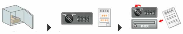 いま話題の宅配ボックスは、高級マンションだけのものではありません。 コンパクトサイズで省スペース設置を実現しました。 電気代ゼロ、電気工事不要、だからランニングコストはかかりません。 ロックと同時に暗証番号が「オートリセット」。 利用者が数字を崩す必要はありません。 操作部は防塵カバー付きで盗み見をガード。 軒下へ設置も可能です。 各桁独立ダイヤルで操作が簡単 |