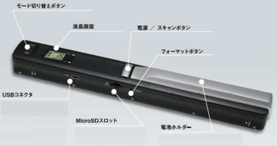 | ■特長 ●ボタンひとつだけでスキャン ●わずらわしいインストール作業は不要 ●スキャンデータは扱いやすいJPEG画像 ●MicroSDへのダイレクト保存 ●外出先でもすぐに交換できる単三電池駆動